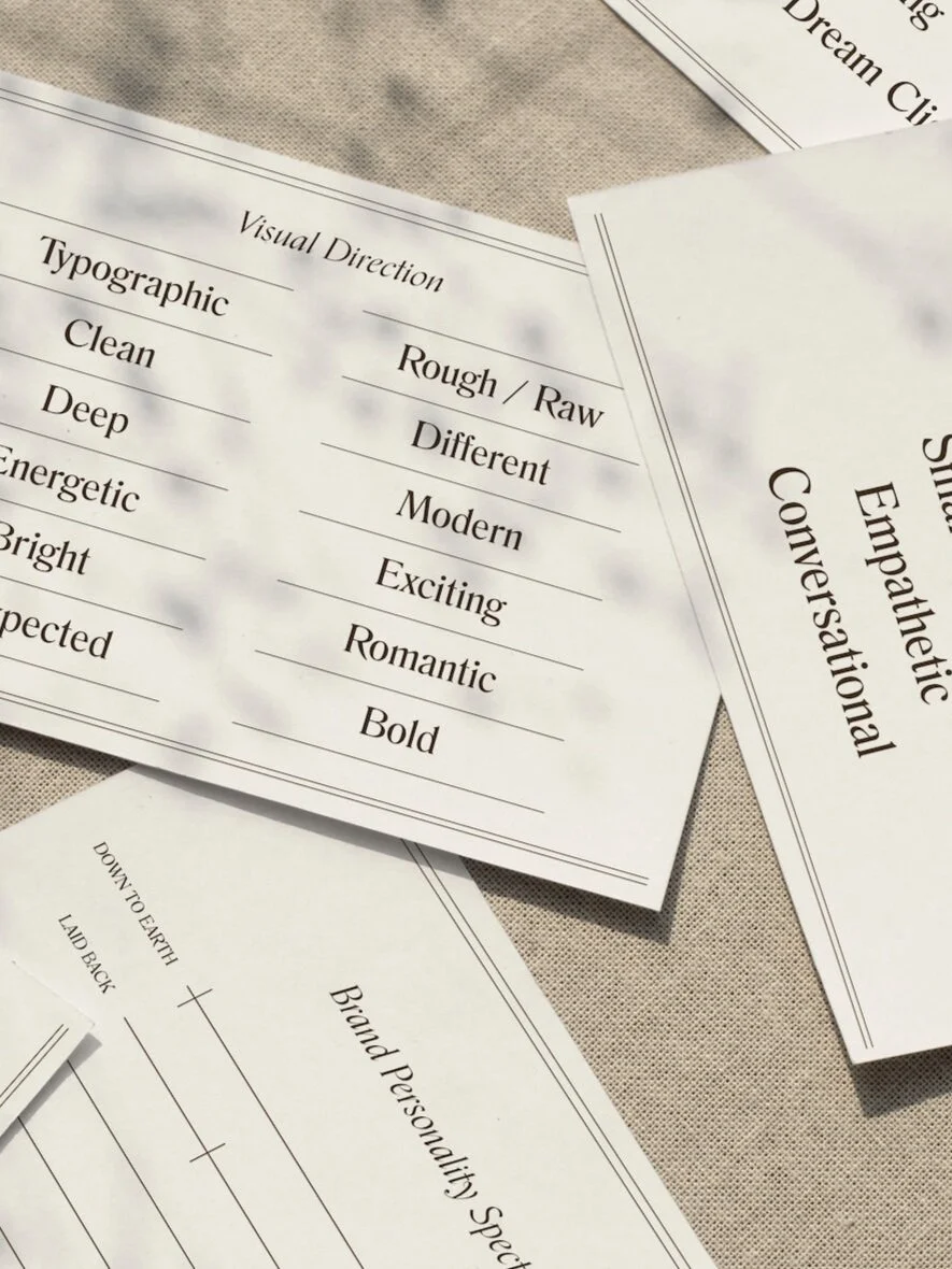 Our brand strategy process includes a detailed questionnaire, and an optional 1:1 strategy call where we’ll get to the root of WHY you do what you do. Together, we’ll uncover things like your vision, mission statement, values, target audience, industry peers, messaging, personality, and more. You’ll walk away with a beautifully packaged strategy that will serve you for years to come, and clarity on your brand’s purpose. (Aka, the most important thing in our mind!)